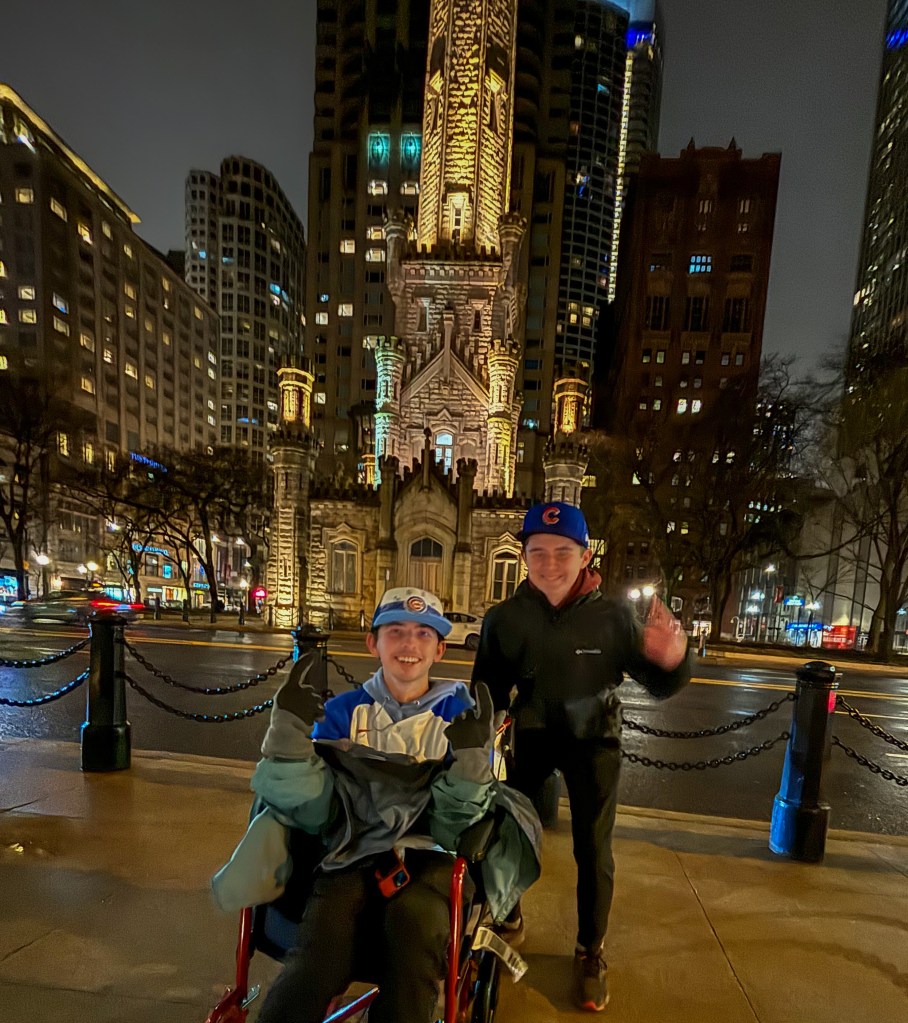 Turns out, Gabe is an even better guy now. He was the most kind helper I know of – always willing to offer a helping hand, and he never treated me any different because of my physical differences. He was always going ahead of us to get the doors, pick up my phone off the ground or help get my wheelchair out of the cracks and crevices of the Chicago street (Somehow, he and Billy kept me from falling face-first onto the street the entire trip). He reminds me of my younger cousin, Drew; just a complete servant’s heart. And he’s 16. Gabe is an awesome guy, and I’m so glad we got to reconnect. We had plenty of opportunities to over the week.